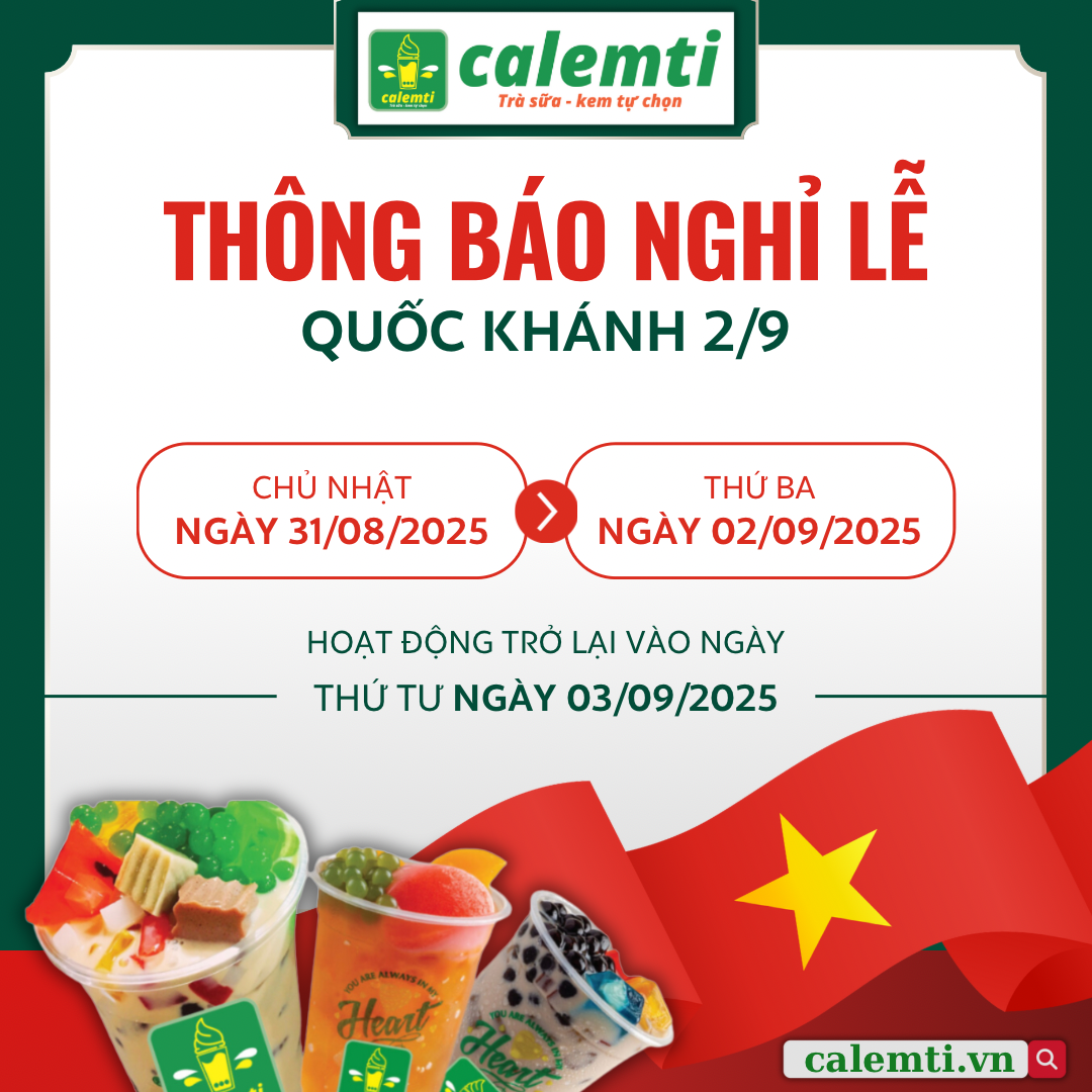 Nhân dịp kỷ niệm 80 năm Ngày Quốc Khánh Nước Cộng hòa Xã hội Chủ nghĩa Việt Nam (02/09/1945 – 02/09/2025), CALEMTI xin gửi lời chúc đến Quý khách hàng một kỳ nghỉ lễ thật nhiều niềm vui.❤️